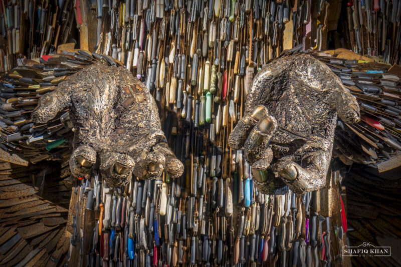 The Knife Angel is a powerful sculpture created by British artist Alfie Bradley. It was constructed entirely from confiscated and surrendered knives collected from across the United Kingdom. The sculpture stands at over 25 feet tall and represents an angelic figure made out of around 100,000 knives. The Knife Angel was unveiled in 2017 in the city of Coventry, serving as a memorial and a symbol to raise awareness about the devastating consequences of knife crime and violence. The artwork aims to encourage dialogue and promote efforts to address the issues surrounding knife crime and its impact on communities.